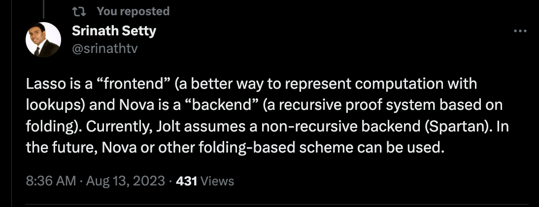 So.. what have we been talking about for all of these months? Avid readers may have seen a theme in our tweets and blog posts. We are huge fans of the simplicity of Nova a ZKP 'folding 'scheme described in detail here and in our blog here.